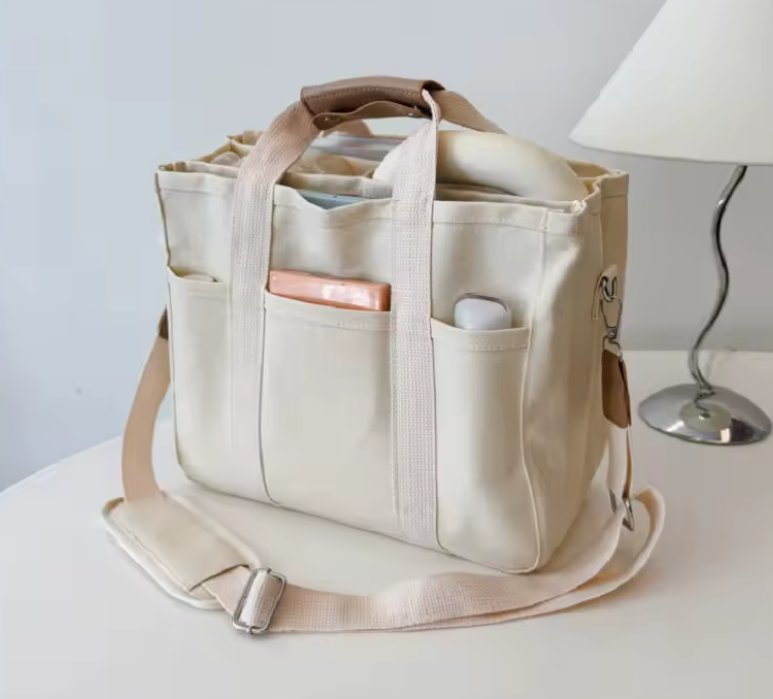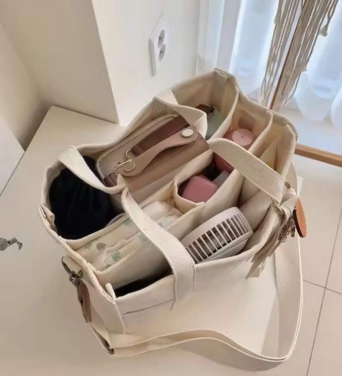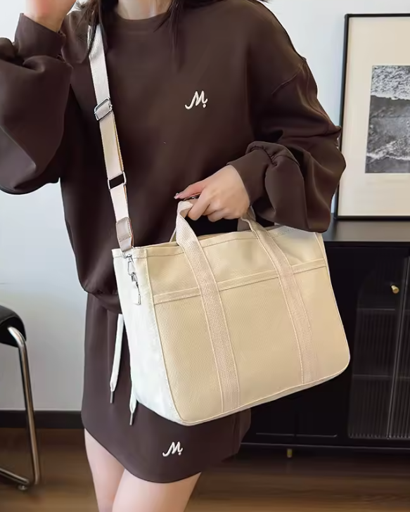 Yoğun tempolu hayatına ayak uyduracak bir çanta hayal et: Çok bölmeli iç tasarımı sayesinde her eşyan için ayrı bir yer var. Anahtarını, cüzdanını, telefonunu, defterini ya da makyaj çantanı ararken zaman kaybetmeyeceksin. Tüm ihtiyaçların elinin altında, düzen içinde! Üstelik yüksek kaliteli kanvas kumaşı sayesinde hem dayanıklı hem de hafif gün boyu omzunda taşısan da seni yormaz, stilinden de ödün vermez. Bu çanta, hem fonksiyonel hem de estetik düşünen kadınlar için tasarlandı.